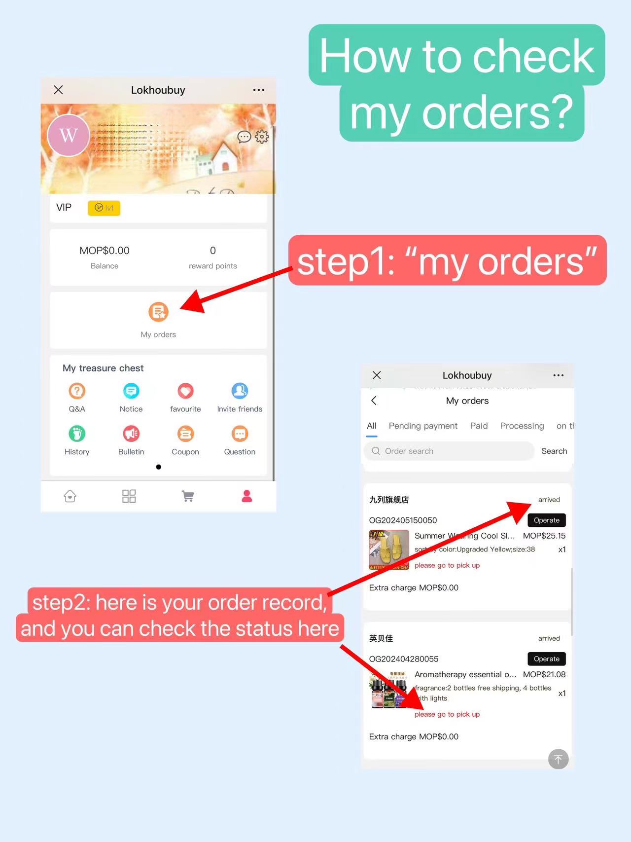 And you can check the item's status