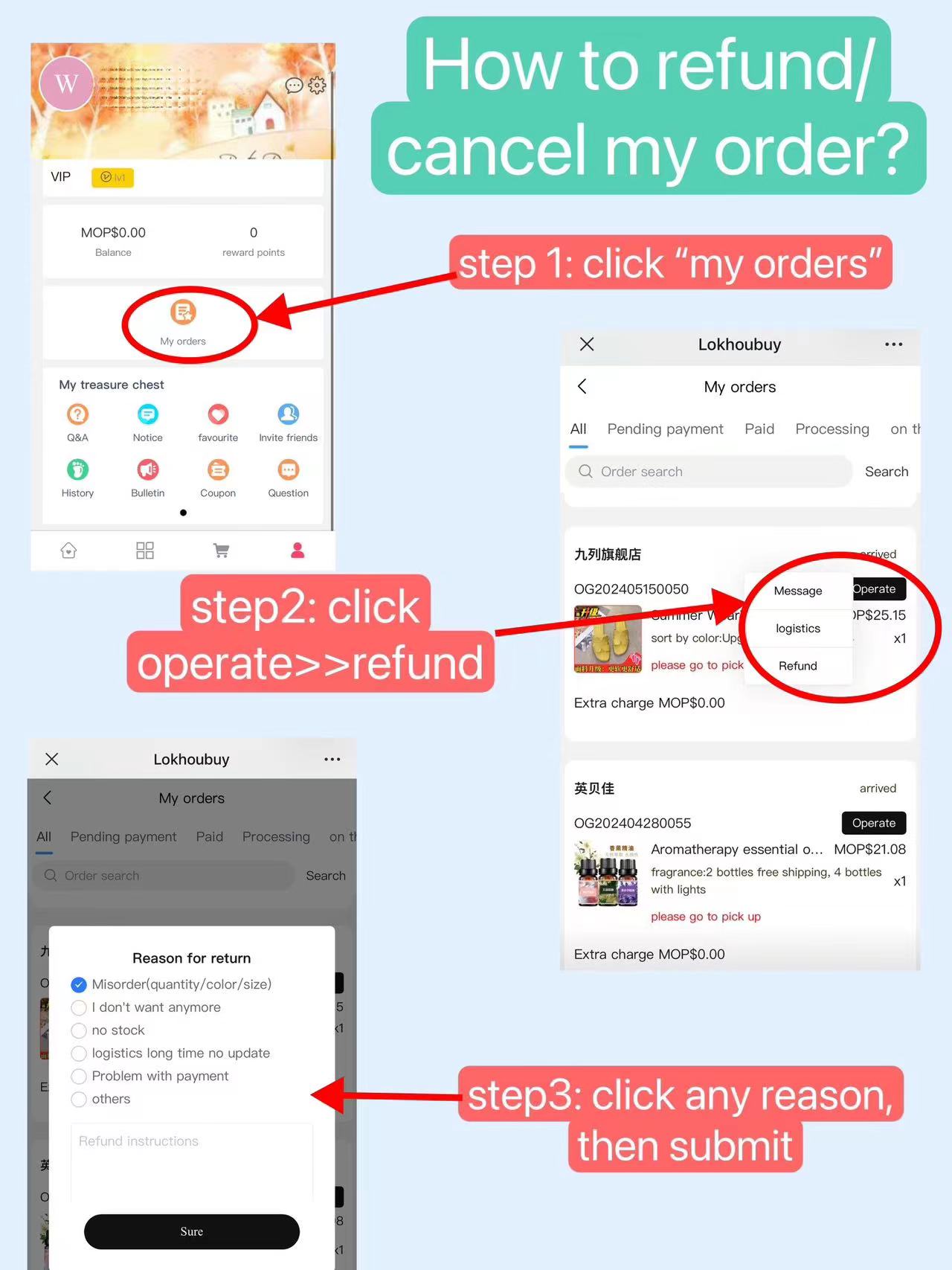 If unfortunately you have an order refunded, you can click refund. The money will be put to your balance in the system. You can use it for next order.